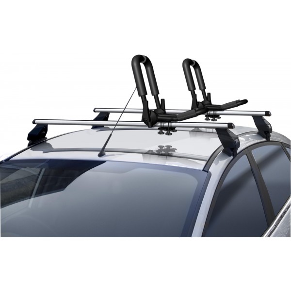 A Menabo Niagara kajakszállító segítségével, kényelmesen és biztonságosan szállítható 1db kajak az autó tetőcsomagtartóján. Amikor nem használjuk, összecsukható, ezáltal csökkenthető a szélzaj. A mellékelt hevederekkel gondosan rögzítsük le a kajakot, a nagyobb biztonság érdekében plusz heveder, gumipók is használható. A gumival és szivaccsal párnázott tartókarok biztosítják, hogy a kajak ne sérüljön. A kajaktaró rögzítése T-adapterekkel lehetséges, alumínium keresztrudakra.