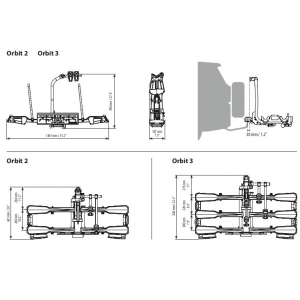 A Menabo Orbit vonóhorogra szerelhető kerékpártartó, nagy teherbírású, két normál kerékpár vagy két darab e-bike biztonságos szállítására alkalmas. Az állíthatóságából adódóan, szinte bármilyen női vagy gyermek kerékpár szállítására használható. A maximális kényelem érdekében kerékpárokkal együtt billenthető, egy lábpedál segítségével, hogy könnyebben hozzáférjünk a csomagtartóhoz.