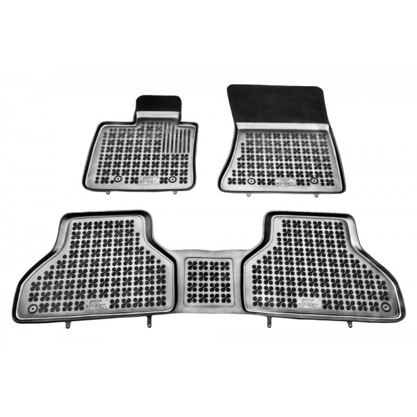 Méretpontos gumiszőnyeg. Gyári minőségű, kopásálló, szagtalan gumiból készült peremes gumiszőnyeg BMW X5 2006-tól 2013-ig gyártott autókhoz. Háromrészes autó gumiszőnyeg garnitúra.