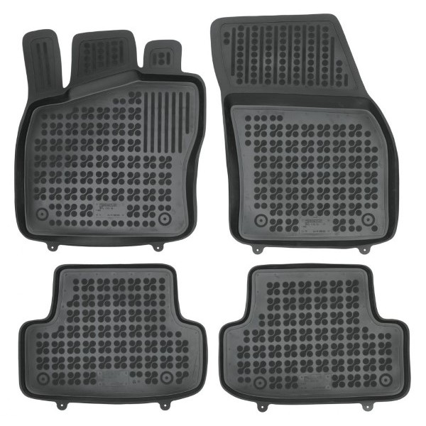 Méretpontos gumiszőnyeg. Gyári minőségű, kopásálló, szagtalan gumiból készült peremes gumiszőnyeg Volkswagen T-Roc 2017-től gyártott autókhoz. Négyrészes autó gumiszőnyeg garnitúra.