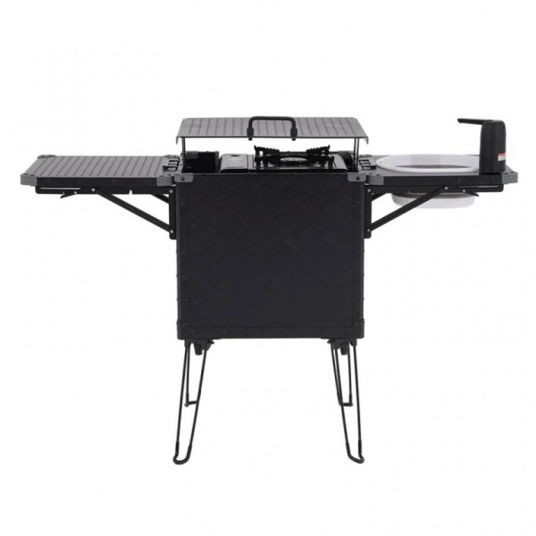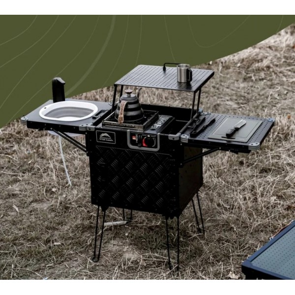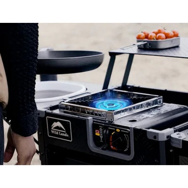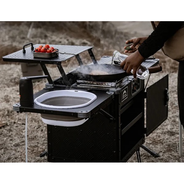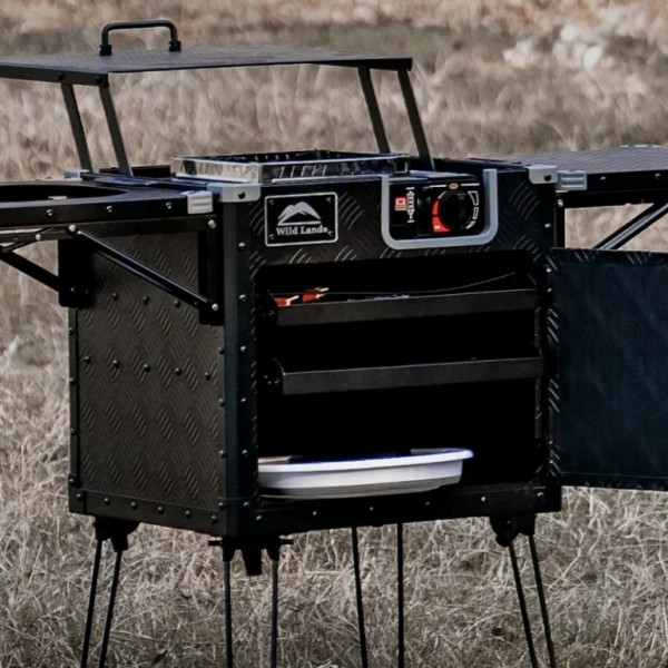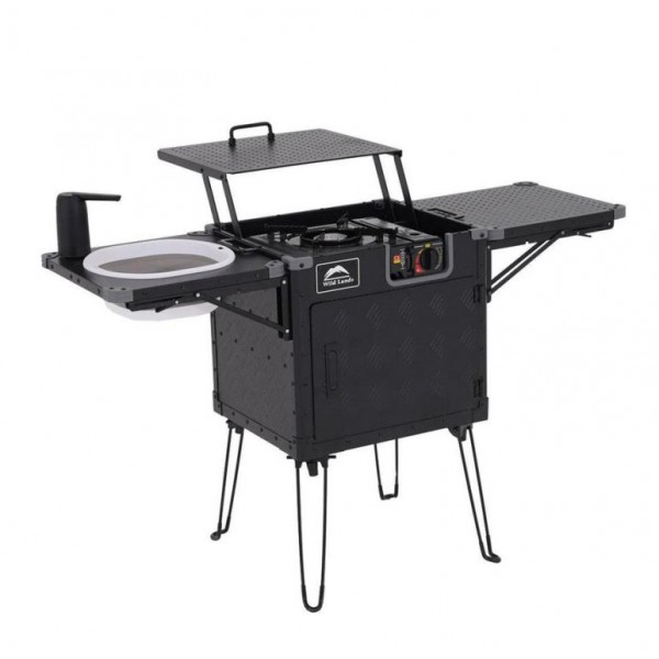 Tökéletes megoldás azok számára, akik nem akarnak lemondani a kényelemről kempingezés vagy a szabadban tartózkodás során. Kompakt, összecsukható kialakításának köszönhetően könnyen szállítható és tárolható – ideális utazáshoz, kirándulásokhoz vagy szabadtéri fesztiválokhoz. Amikor a kempingezők kényelmet és teret szeretnének a kültéri főzéshez, a Wild Land Compact Integrated Store & Kitchen kielégítheti ezeket az igényeket alumínium vezérlőközpontjával, amely tartalmaz egy tűzhelyet, vágódeszkát, mosogatót, kihúzható tárolófiókot és emelhető polcot, amelyek mind egyetlen tökéletes kompakt tárolórekeszbe hajthatók össze. De akár egy kerti főzéshez is tökéletes lehet. Minden eszközt rendben tudsz tartani, mert mindennek helye van - Több független tárolóhely, evőeszközök, főzőedények, vízellátó rendszer egyben.