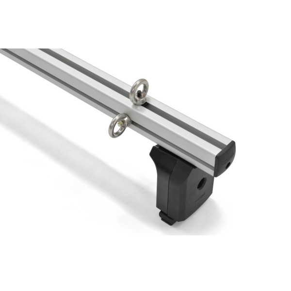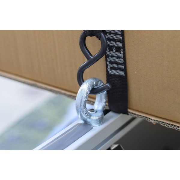 A rögzítő karikát az alumínium tetőcsomagtartó felső nútjába lehet rögzíteni, a csomagban lévő T-csavarok segítségével.