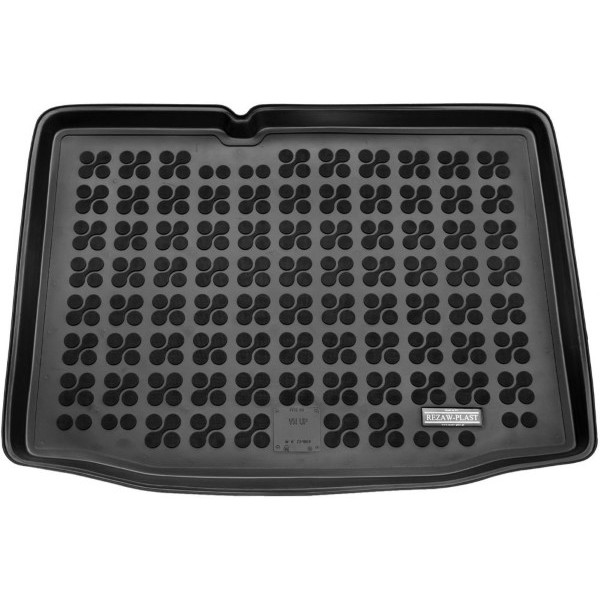 Méretpontos gumi csomagtartó borítás. Gyári minőségű, kopásálló, szagtalan gumiból készült peremes gumi csomagtartó tálca Volkswagen Up 2011-től gyártott autókhoz.